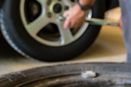 - 차량을 안전한 장소에 주차하고, 타이어를 제거합니다.