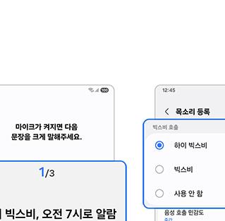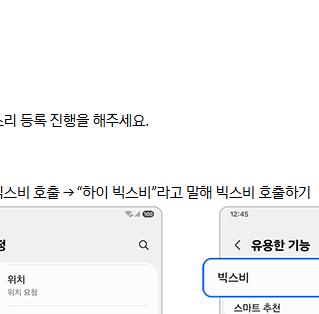 - 목소리 등록 : '목소리 등록'을 선택하고 화면의 안내에 따라 목소리를 등록합니다. 이 과정은 빅스비가 사용자의 목소리를 인식하는 데 필요합니다.