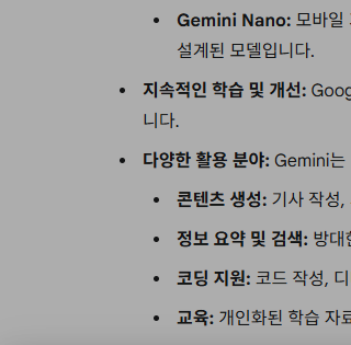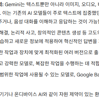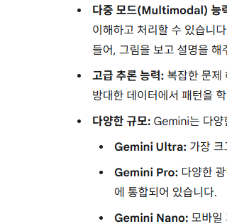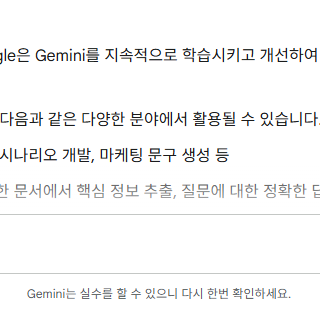- 답변 검증 : 제미나이는 제공하는 정보의 정확성을 검증할 수 있는 기능을 갖추고 있어, 신뢰할 수 있는 정보를 제공합니다.