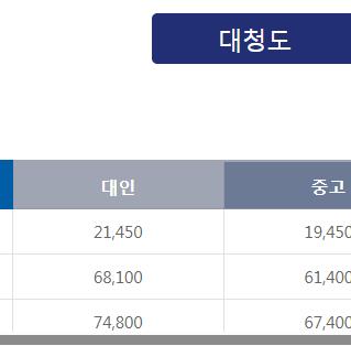 인천항 여객터미널 > 연안여객터미널 > 운항안내 > 여객운임안내 > 백령도ㆍ대청도ㆍ소청도