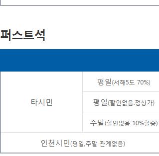 백령도 배편 요금 안내