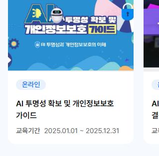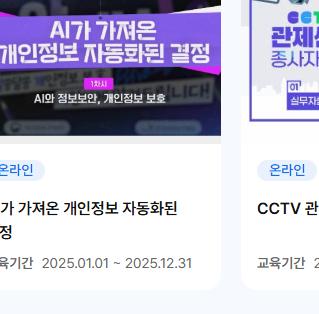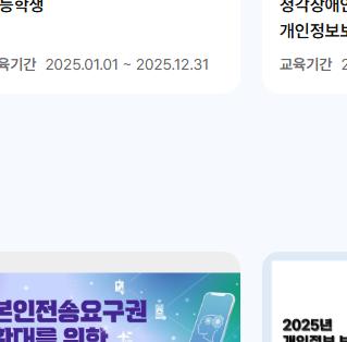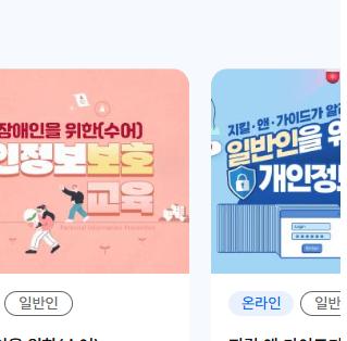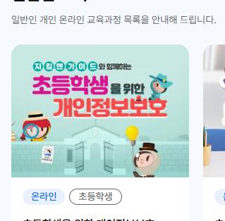 개인정보 배움터에서는 개인 수강과 단체 수강 모두 가능한 다양한 온라인 교육 과정을 제공합니다. 교육 과정은 다음과 같은 주제를 포함하고 있습니다: