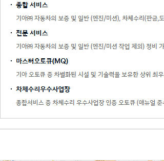 - 부품 교체 : 기아 정품 부품을 사용하여 안전하고 신뢰할 수 있는 수리를 제공합니다.