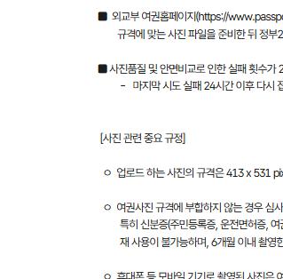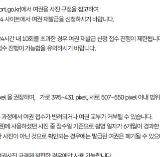 - 여권용 사진 : 최근 6개월 이내에 촬영한 여권용 사진 1매가 필요합니다.