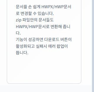- 변환 완료 후 다운로드 : 변환이 완료되면 HWP 파일을 다운로드합니다.