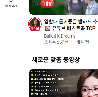 - 원하는 동영상이나 채널을 찾습니다.
